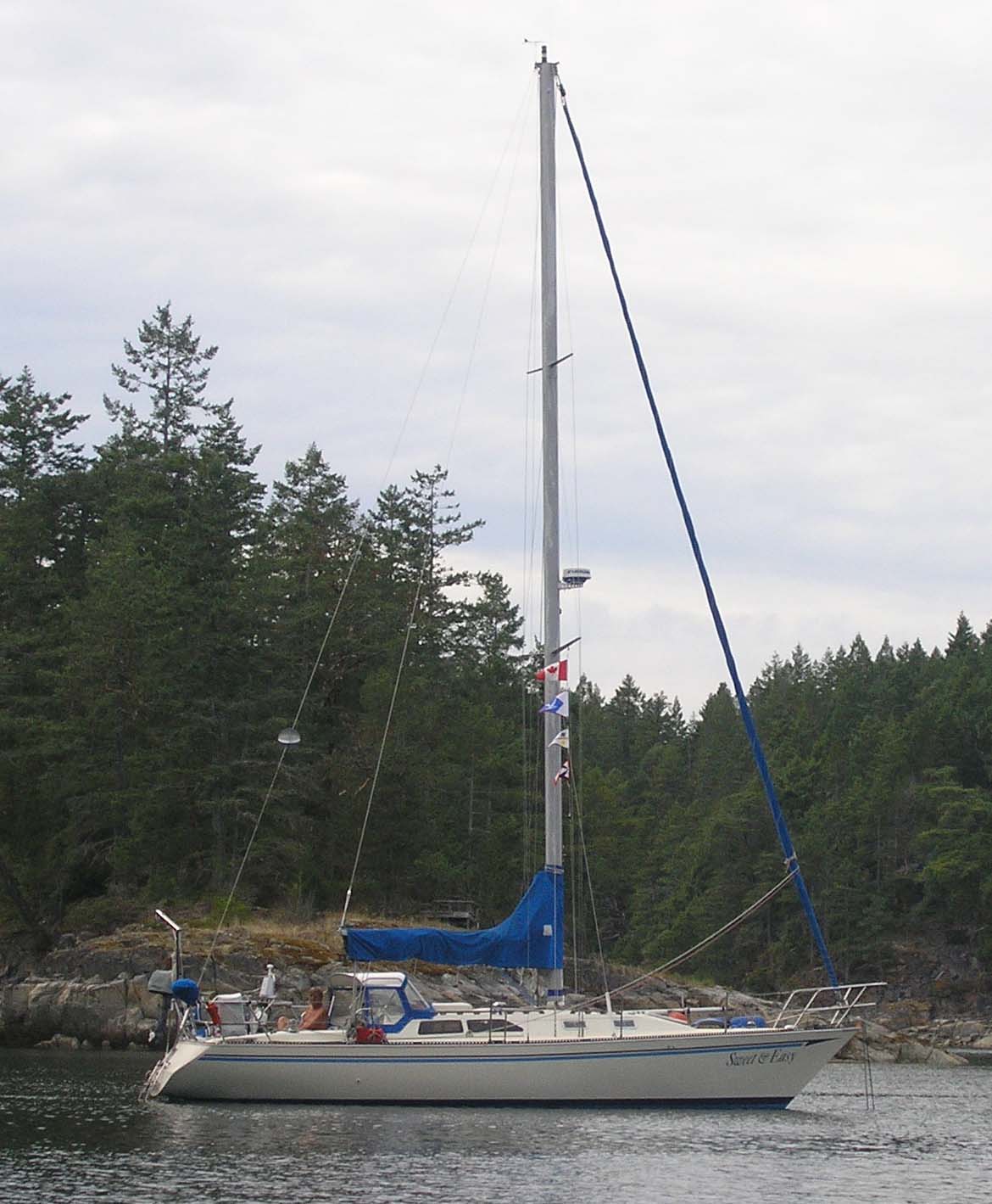 This is the boat we used for many years to cruise Puget Sound. It is a Sceptre 36, a fiberglass sloop with a fin keel and skeg hung rudder.